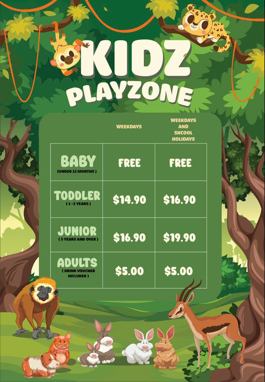 At Kidz Playzone, we want every visit to feel rewarding. That’s why adults receive a $5 Café Voucher on every visit a little treat to enjoy while your kids play, learn, and explore. Relax, sip your favorite drink, and make the most of your family time with us.
